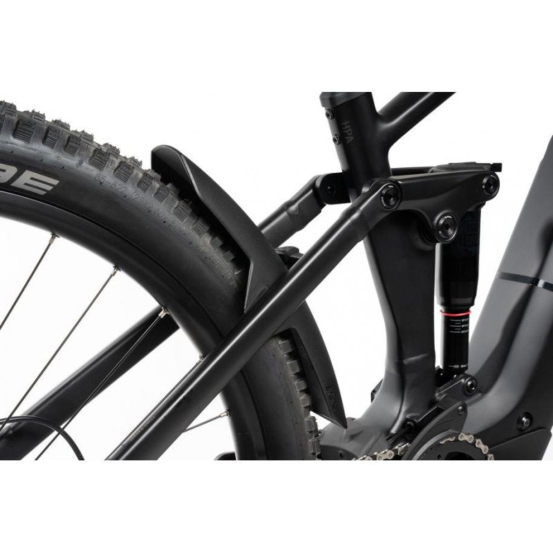 vlastnosti: pre 27,5" a 29" Cube Stereo Hybrid 120, 140 a Reaction Hybrid MTB s pripojením SIC 2.0; chráni zadný tlmič pred striekajúcou špinou; v závislosti od šírky vymeniteľné gumové podložky pre optimálne uchytenie na sedlovke; maximálna šírka plášťa do 2,6"