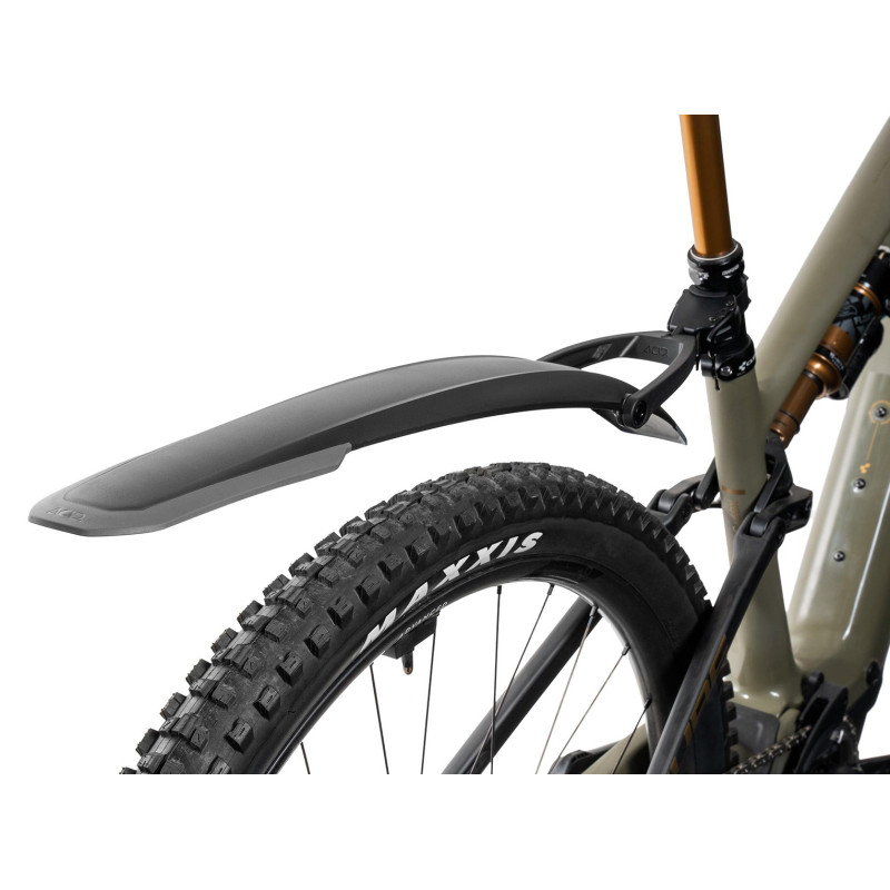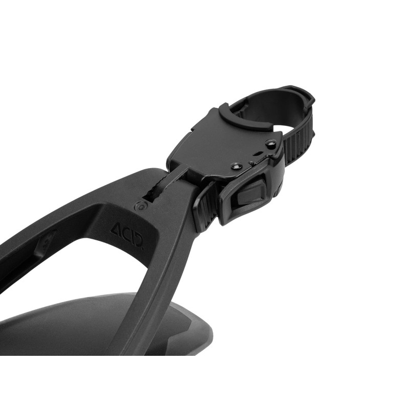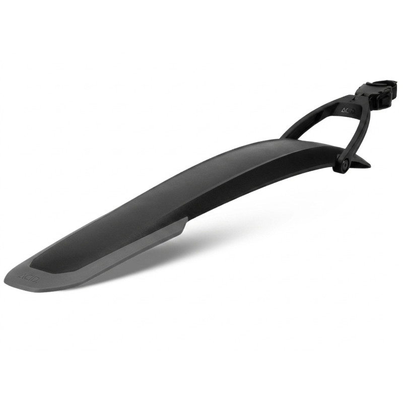 Konštrukcia blatníka je vyrobená z vysoko odolného polypropylénu, ktorý je dostatočne pružný, aby odolal nárazom konárov, a zároveň dostatočne tuhý, aby si zachoval svoj tvar aj pri agresívnej jazde. Športový dizajn so širším profilom zabezpečuje efektívne krytie širokých MTB plášťov. Hlavnou prednosťou verzie PRO je integrovaný ráčňový systém, ktorý zaisťuje pevné a stabilné uchytenie na takmer akúkoľvek sedlovku bez rizika jej poškriabania. Blatník je vybavený dvojitým kĺbovým ramenom, ktoré umožňuje precízne nastavenie uhla a vzdialenosti od kolesa, čím sa dosiahne optimálna ochrana pri zachovaní voľného pohybu jazdca nad zadným kolesom. Matná povrchová úprava s lesklými detailmi a logom ACID dodáva bicyklu profesionálny vzhľad, zatiaľ čo aerodynamický tvar minimalizuje odpor vzduchu a nánosy nečistôt na samotnom blatníku.