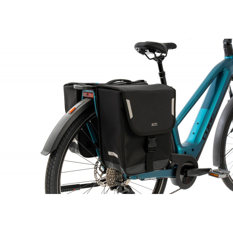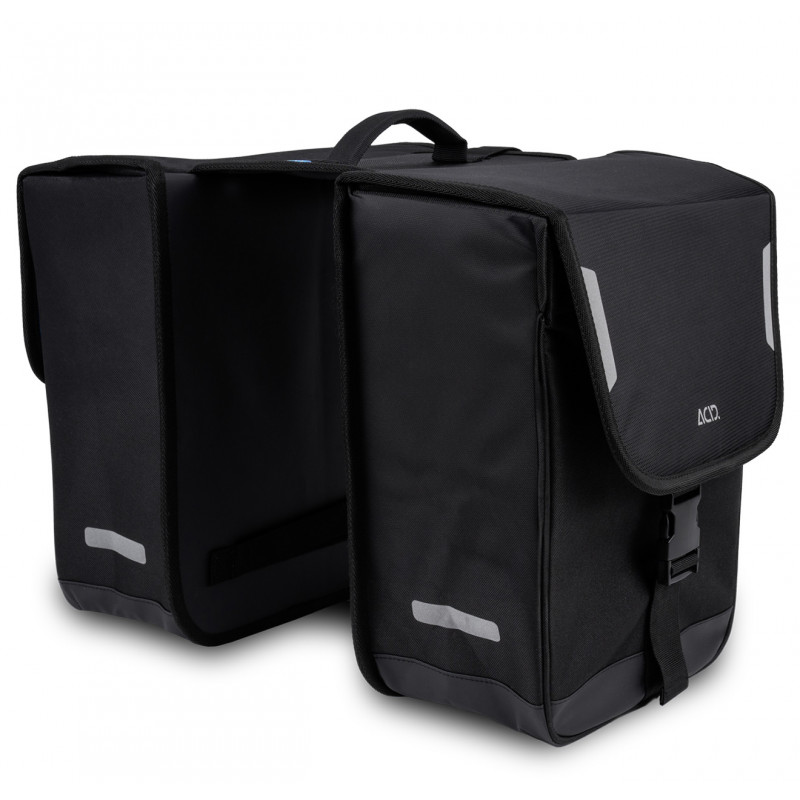 Praktické sieťované vrecká v hlavných priehradkách tejto dvojitej bočnej tašky udržiavajú obsah usporiadaný. Reflexné detaily a reflexná pláštenka zlepšujú viditeľnosť v zlých svetelných podmienkach.