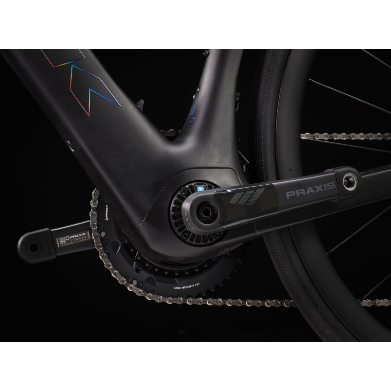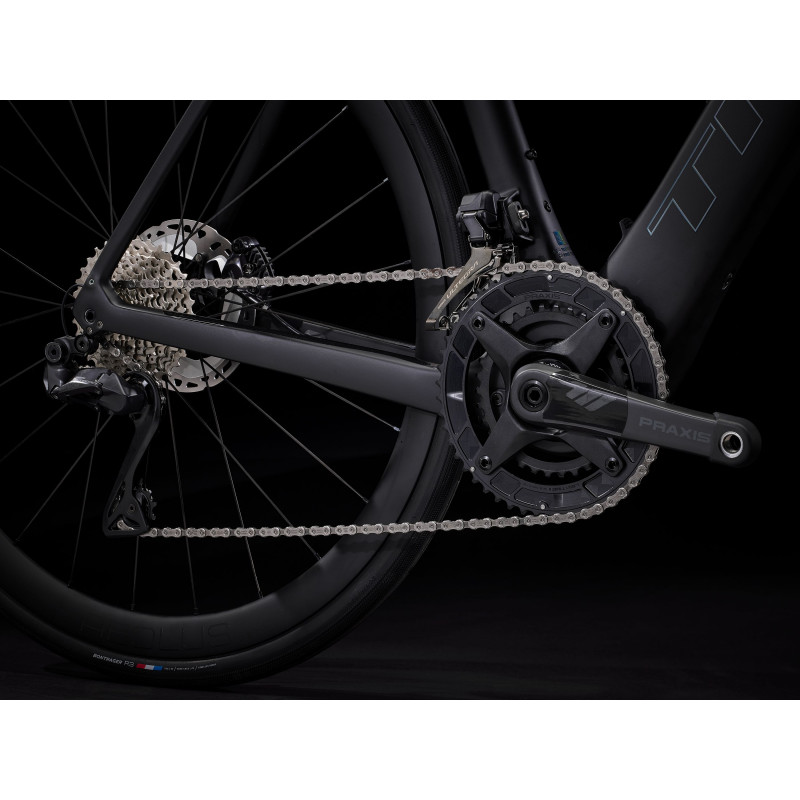 Mimoriadne ľahký karbónový rám OCLV Carbon série 800 so zadným systémom IsoSpeed. Výkonný motor TQ HPR s krútiacim momentom 50 Nm, ktorý asistuje až do rýchlosti 25 km/h, integrovaná 360Wh batéria, integrovaný inteligentný LED displej a diskrétne ovládacie prvky prepínania režimov asistencie na riadidlách. Kolesá Aeolus Pro 37 OCLV Carbon, bezdrôtový elektronický pohon Shimano Ultegra 2x12 Di2, karbónové kľuky, riadidlá Bontrager Pro Iso-Core, ktoré absorbujú vibrácie, a stĺpik RCS Pro s plne integrovanými káblami pre elegantný vzhľad.