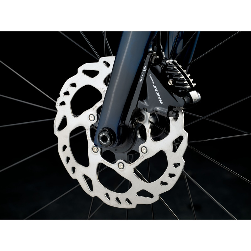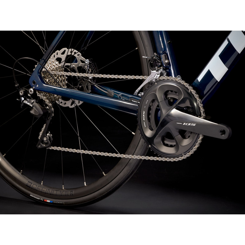 Ľahký aerodynamický rám a vidlica z karbónu OCLV Carbon série 500, 11-rýchlostné hnacie ústrojenstvo Shimano 105, účinné hydraulické kotúčové brzdy Shimano s uchytením Flat Mount, vnútorne vedené lanká pre elegantný vzhľad a kolesá Bontrager Paradigm pripravené na bezdušové použitie Tubeless Ready.