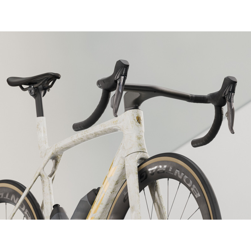 - Trek Jednodielny karbónový kokpit Madone Gen 8, kónické karbónové riadenie, interné vedenie lanka brzdy, uchytenie kotúčov typu flat mount, skosená pevná os 12 x 100 mm