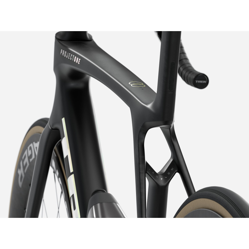 - Trek Jednodielny karbónový kokpit Madone Gen 8, kónické karbónové riadenie, interné vedenie lanka brzdy, uchytenie kotúčov typu flat mount, skosená pevná os 12 x 100 mm