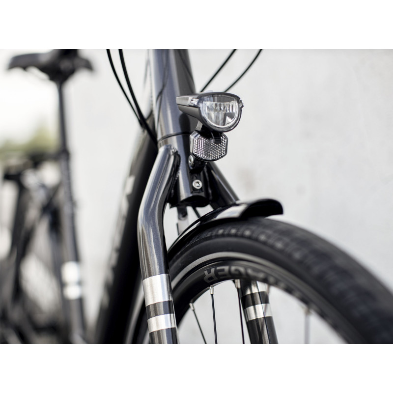Spanninga Duxo XB, na baterii // Přední světlo AXA Greenline 35, lze dobíjet přes kabel USB // Zadní světlo Spanninga Solo