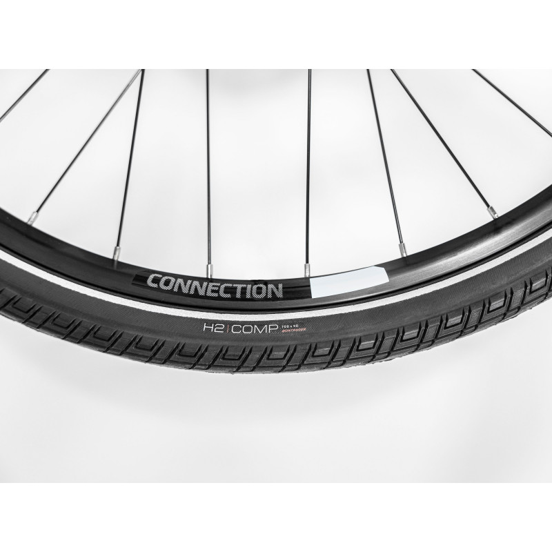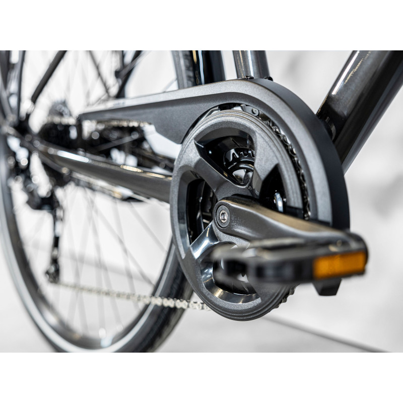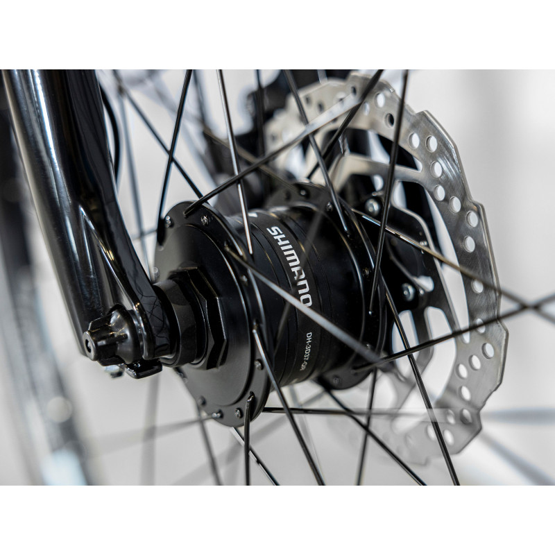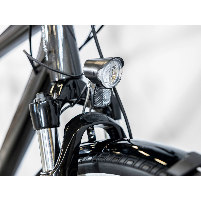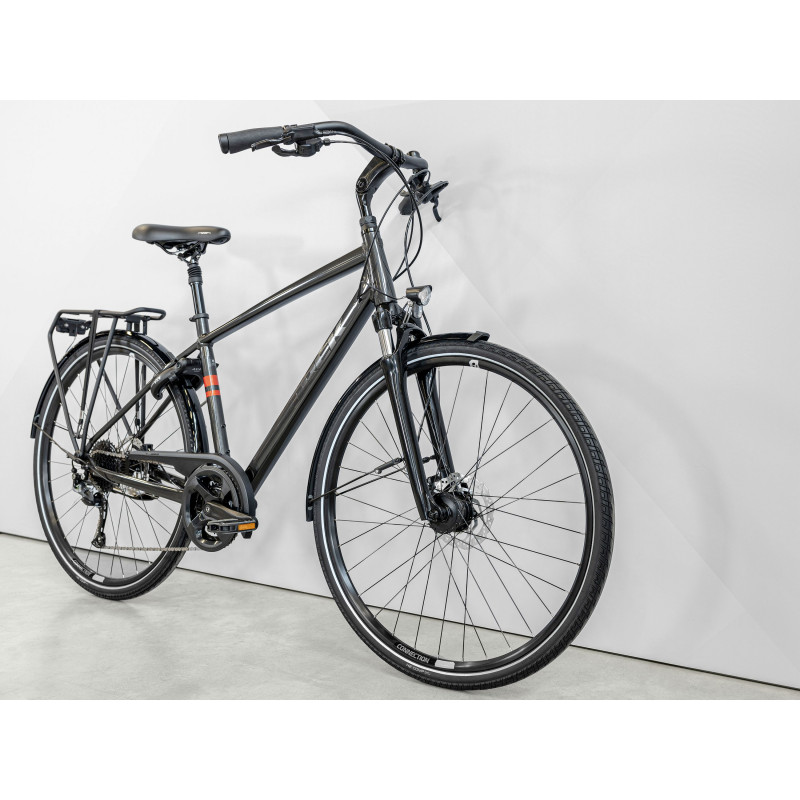 Ľahký hliníkový rám, spoľahlivé radenie s 18 prevodmi, vďaka ktorým nikdy nebudete šliapať príliš namáhavo ani zbytočne rýchlo, výkonné kotúčové brzdy, nastaviteľný predstavec, mäkšie sedlo, ergonomické gripy, široké plášte s reflexnými bočnicami a šírkou 40c pre lepšiu stabilitu, odpružená vidlica a sedlovka, ktoré tlmia nerovnosti, predné a zadné svetlo napájané z nábojového dynama s výkonom 3 W a pohodlná geometria so vzpriameným posedom. Okrem toho je vybavený všetkým, čo na jazdu potrebujete, ako sú blatníky, svetlá, stojan, zámok a zadný nosič kompatibilný so systémom MIK.