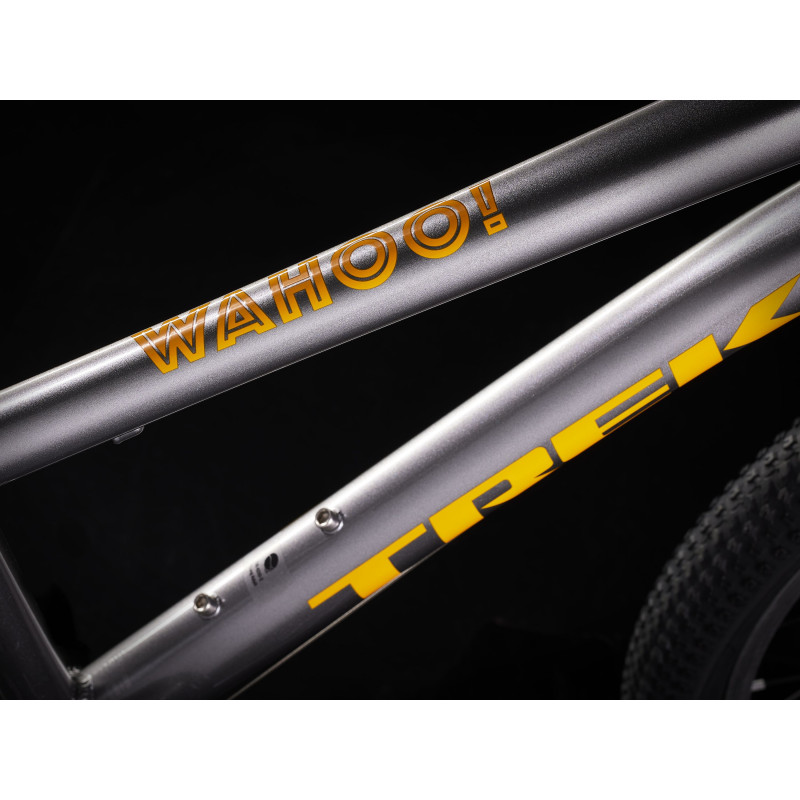 Wahoo 20 je ľahký, jednoduchý a praktický detský hybridný bicykel, ktorý vášmu drobcovi uľahčuje každú jazdu. Tento všestranný bicykel je skonštruovaný pre jednoduché použitie: je ľahký, dokáže jazdiť na rôznych povrchoch a je vybavený pohonom 1x8 a širokou škálou prevodov pre všade, kde sa vaše dieťa potuluje. Pre deti vo veku od 6 do 8 rokov vysoké 114 až 132 cm. Viete, že jazdenie je o zábave a chcete, aby mal váš drobec schopný bicykel, ktorý sa ľahko ovláda a je všestranný. Či už jazdíte ako rodina alebo ráno dochádzate do školy, Wahoo ponúka jednu skvelú jazdu za druhou. Ľahký hliníkový rám Alpha, ktorý deti ľahko zdvíhajú a manévrujú, pneumatiky s viacerými povrchmi pre trakciu v rôznom teréne a hnacie ústrojenstvo 1x8, ktoré zjednodušuje proces radenia, aby sa deti mohli sústrediť na to, na čom záleží: na zábavu! Wahoo je všestranný detský bicykel so skvelým všestranným výkonom. Je ľahký, praktický, skonštruovaný tak, aby sa ľahko používal a jazda s ním bola zábavná. Navyše je veľmi jednoduché ho upraviť, takže si ho váš drobec môže pozmeniť podľa seba! - Ľahký a schopný Hliníkový rám Wahoo je pevný a odolný, no stále dostatočne ľahký na to, aby ho deti ľahko ovládali - Uzavreté dropouty s patentovaným Trek ThruSkew, bezpečnostnou funkciou, ktorá zaisťuje, že kolesá nikdy neúmyselne nevypadnú. - Jednoduchý pohon 1x8 zjednodušuje radenie, takže sa deti môžu sústrediť na zábavu! - Investícia do detského bicykla od renomovanej značky sa určite vyplatí. Detské bicykle značky Trek navrhujú a skladajú ľudia, ktorí bicyklom absolútne rozumejú. Vylepšite si pedále a ešte viac si zamilujte svoj bicyke Os pedais são dois dos cinco pontos de contacto entre ti e a tua bicicleta, e embora esta bicicleta inclua um par, atualizares os pedais aumenta o controlo e a aderência e vai melhorar bastante as tuas voltas. Consulta o guia de pedais para encontrares os melhores pedais para o teu estilo de pedalar. Recomendamos os pedais de plataforma pela versatilidade e simplicidade.
