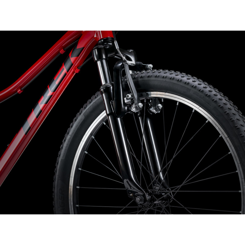 Precaliber 24 s 8-rýchlostným radením a odpruženou vidlicou je univerzálny detský bicykel pre malým dobrodruhom, ktorí milujú jazdu na nespevnenom povrchu. Má robustný ale ľahký hliníkový rám s kvalitnou odpruženou vidlicou a 8-rýchlostné radenie. Vďaka tomu je ideálny na rýchlu jazdu domov zo školy alebo na výlety s rodinou do lesa a na traily. Bicykel je určený deťom vo veku od 8 do 12 rokov vysokým 130 až 150 cm. Radi vyrazíte na bicykli do prírody spolu s deťmi. Hľadáte kvalitný detský bicykel, ktorý je pohodlný, odolný a ponúka malému odvážlivcovi všetko, čo potrebuje na zdolanie singletrackov. Pevný a ľahký hliníkový rám, jednoducho ovládateľné 8-rýchlostné radenie Shimano a predná vidlica so zdvihom 45 mm, ktorá vyhladí nerovnosti. Ďalej stojan, úchyty na zadný nosič a sedlo s integrovanou rukoväťou, ktorú možno vymeniť za úchyt na zadné svetlo. Je veľmi odolný, takže ho môžu po starších súrodencoch zdediť aj mladší nádejní cyklisti. A pritom bude stále ako nový. Tento odolný a kvalitný bicykel je ako stvorený na zábavu a získavanie skúseností na trailoch. Vďaka prednej vidlici s odpružením a 8-rýchlostnému radeniu je ideálny pre deti, ktoré začínajú jazdiť v teréne. - Vďaka tomuto bicyklu sa váš potomok môže nadchnúť pre celoživotný koníček, ktorý je zdravý, zábavný a šetrný k životnému prostrediu - Deti ľahko zvládnu intuitívne otočné prehadzovanie rýchlostí pri zmene terénu. - Integrovanú rukoväť v sedle možno vymeniť za úchyt na svetlo, aby ste zlepšili viditeľnosť dieťaťa na rodinných výletoch alebo sólo výpravách. - A ako pri všetkých bicykloch Precaliber, rám je posadený nižšie, takže deti môžu ľahšie vysadnúť do sedla alebo zoskočiť z bicykla. - Investícia do detského bicykla od renomovanej značky sa určite vyplatí. Detské bicykle značky Trek navrhujú a skladajú ľudia, ktorí bicyklom absolútne rozumejú.
