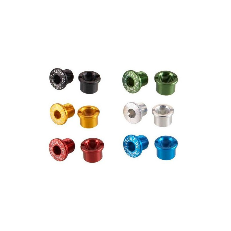 Balenie obsahuje 4 páry skrutiek a matíc v príslušnej farbe pre montáž jednoprevodníka na 4 ramenné MTB kľuky na BCD 104mm.