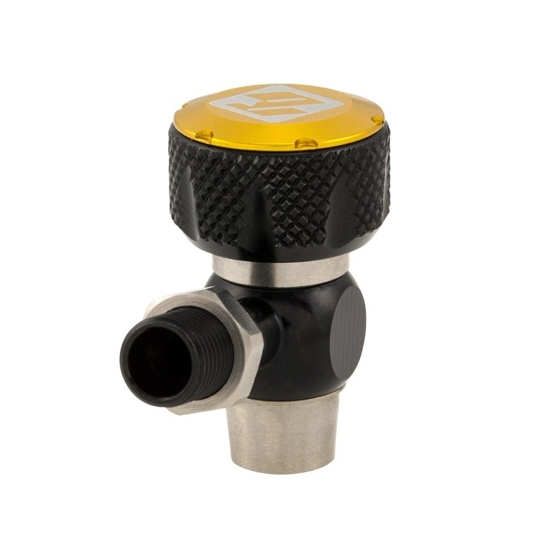 2. Naskrutkujte ZeroLoss adaptér na ventil tlmiča/sedlovky/vidlice a potom zatlačte zlatý ovládač a pootočte s ním v smere hodinových ručičiek. Ak tlačidlo vykočí, stlačte ho a znovu pootočte.