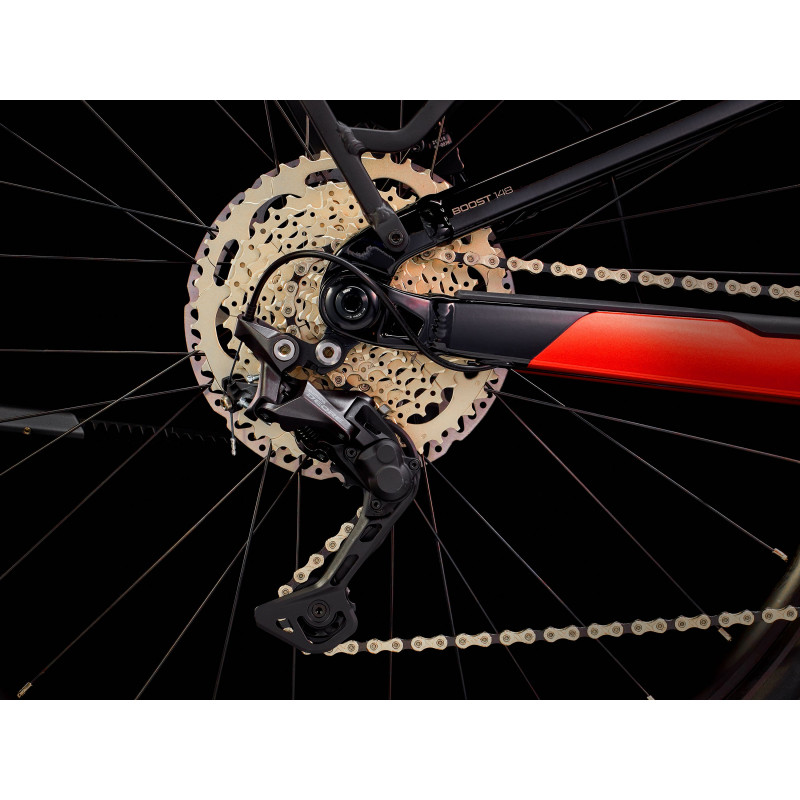 Odolný hliníkový rám ukrývajúci batériu Bosch PowerTube s kapacitou 625 Wh a s dlhým dojazdom, výkonný motor Bosch Performance CX (250 Wh, 85 Nm), ktorý vám pomôže udržiavať tempo až do rýchlosti 25 km/h a cyklopočítač Kiox k systému Smart. Ďalej je tu odpružená vidlica SR Suntour so zdvihom 120 mm, 100 mm zadný zdvih, 10-rýchlostné radenie Shimano, výkonné hydraulické kotúčové brzdy a teleskopická sedlovka.