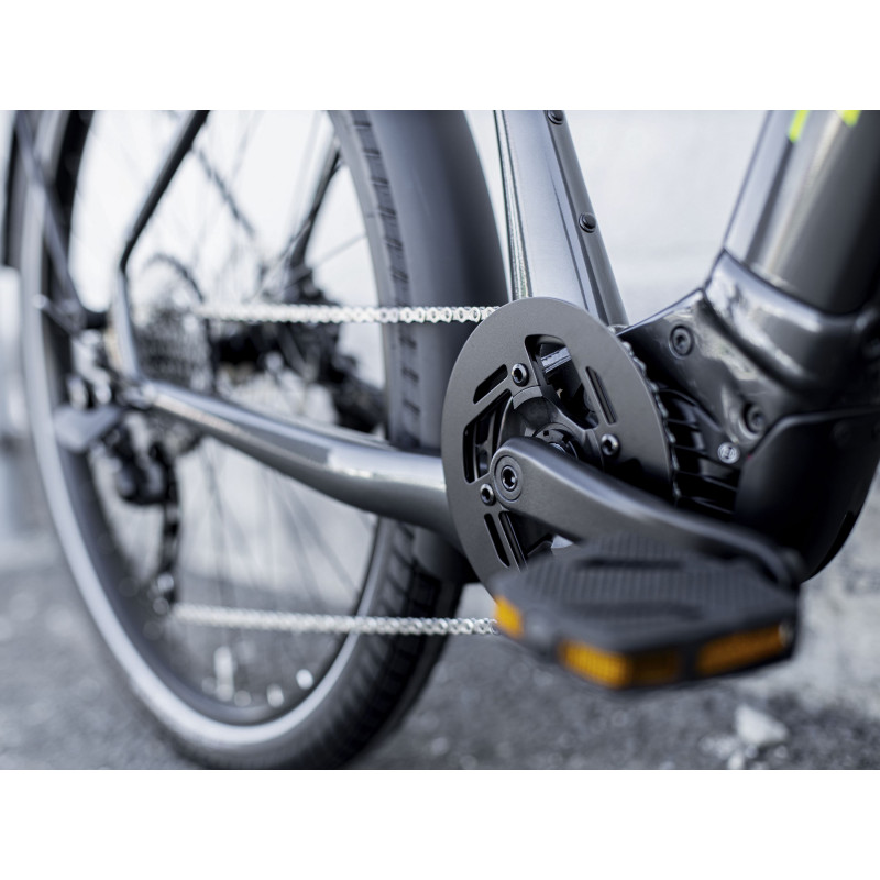 Elegantný hydroformovaný hliníkový rám s plne integrovanou 625 Wh batériou Bosch PowerTube, výkonnou pohonnou jednotkou Bosch Performance Line CX (250 W, 85 Nm), ktorá vám pomáha udržiavať rýchlosť až 25 km/h, a ovládačom Kiox. Plus 10-stupňové hnacie ústrojenstvo Shimano, hydraulické kotúčové brzdy, integrovaný systém predného a zadného osvetlenia, blatníky, zadný nosič a tuhé 27,5 palcové kolesá s pevnými osami.