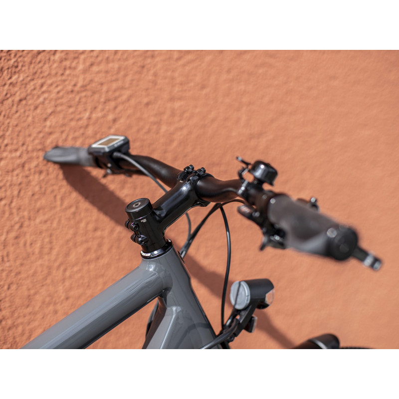 Elegantný, ľahký hydroformovaný hliníkový rám, 500 Wh batéria v ráme, výkonný systém Bosch Performance Line CX (250 W, 85 Nm), ktorý vám pomáha udržiavať rýchlosť až do 25 km/h a ovládač Purion. Plus, odpružená vidlica s blokovaním, 9-rýchlostný pohon Shimano, hydraulické kotúčové brzdy pre brzdnú silu do každého počasia, predné a zadné svetlá, blatníky a zadný nosič.