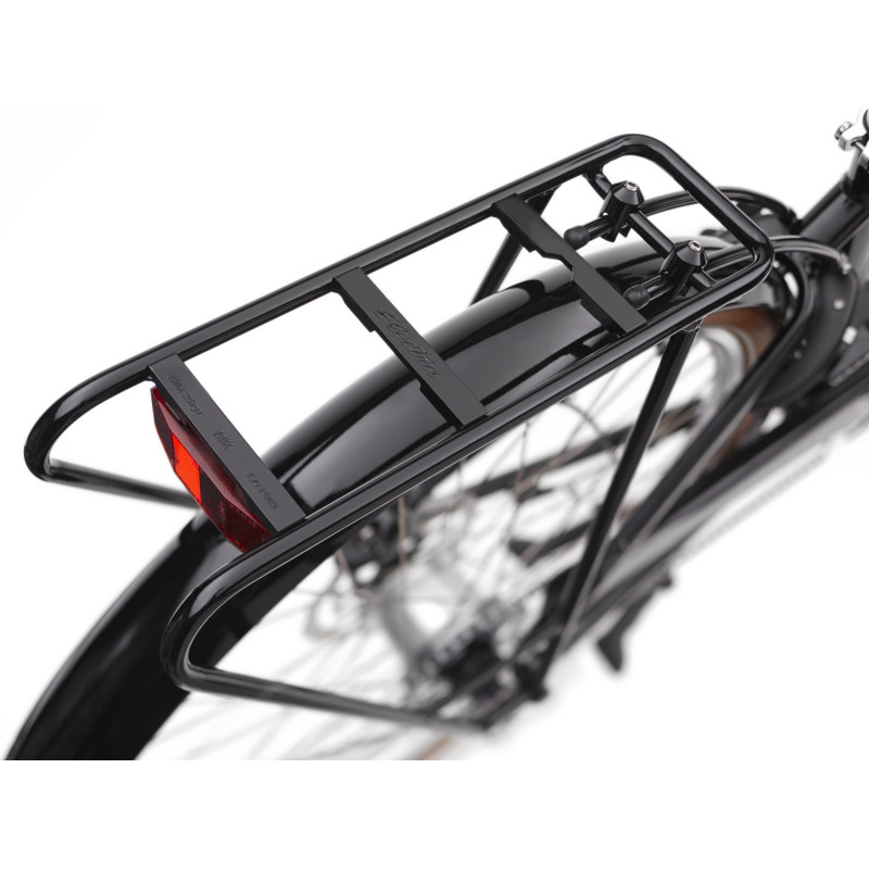 Townie Commute Go! 5i je štýlový e-bicykel na dochádzanie, ktorý si poradí s nástrahami na cestách. Ponúka komfort aj kontrolu typickú pre značku Electra v spojení s technológiou e-bicyklov od spoločnosti Bosch. Farebne zladené predné a zadné nosiče a blatníky umožnia jazdcom štýlovo prekonať aj väčšie vzdialenosti a vzpriamená poloha pri sedení poskytuje široký výhľad na cestu, takže rýchlo zbadáte výtlky na ceste, obchádzky aj najbližšiu kaviareň. Hľadáte elektrobicykel s technológiou a dokonalou výbavou na rýchle, bezpečné a sofistikované dochádzanie. Townie Commute Go! je vybavený dozadu tvarovanými riadidlami, ktoré poskytujú príjemne pohodlnú polohu počas jazdy, a vďaka prednému a zadnému nosiču a svetlám je bicykel výnimočne praktický. Jeho pohon zabezpečuje motor Bosch Performance, ktorý ho prenáša na kolesá s plášťami Schwalbe 700c a hydraulickými kotúčovými brzdami, takže hravo zvládne každé dochádzanie. Stredový náboj Shimano Nexus Inter-5E je navrhnutý pre motory elektrobicyklov a uľahčuje riadenie výstupného výkonu aj výdrže batérie. Nová odpružená sedlovka zaručí pohodlnú jazdu a uzamykateľné hlavové zloženie udrží bicykel na mieste pri nakladaní a vykladaní nákladu na predný nosič. Čo vznikne, keď skombinujete bicykel Electra Townie, technológiu elektropohonu a prídavné funkcie, ako sú predné, zadné svetlá, blatníky alebo nosiče? Vznikne elektrobicykel, s ktorým zažijete úplne novú kvalitu dochádzania. Townie Commute Go! je elegantný a praktický a vychutnáte si na ňom príjemnú jazdu vďaka našej patentovanej technológii Flat Foot Technology®. Život je lepší na cestách s Go! - Batéria PowerPack 500 sa rýchlo nabije vďaka 4-ampérovej nabíjačke a umožní vám vychutnať si neprerušovanú jazdu. - Pomocou 5-rýchlostného náboja s vnútorným radením Shimano Nexus ľahko a intuitívne preradíte na nižší prevod, keď vás prekvapí červená na semafore. - Jednoducho sledujte svoje jazdy na displeji Bosch Purion na riadidlách. - 700c plášte Schwalbe si hravo poradia s nástrahami na cestách. - Svetlá sa hodia k farebne zladenému prednému nosiču a zadnému MIK nosiču a zvyšujú praktické využitie bicykla.