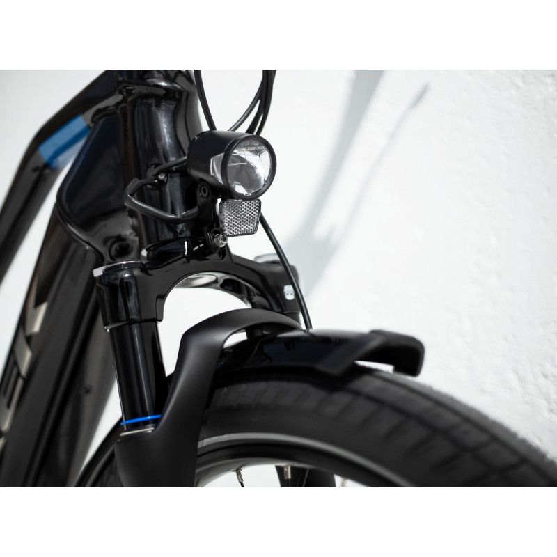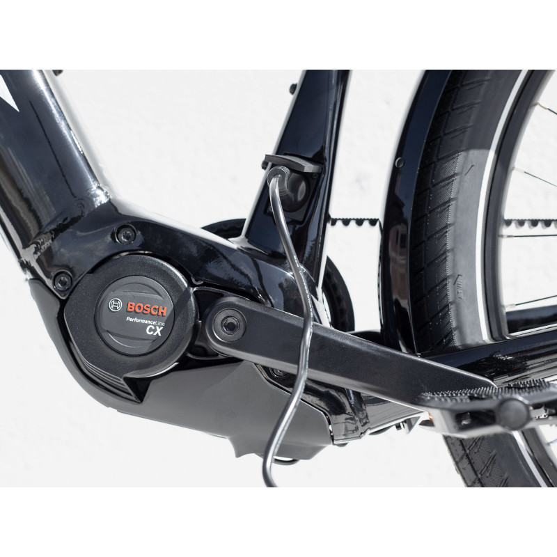 Elegantný, vysoko výkonný hydroformovaný hliníkový rám so stupňovitou geometriou, ktorý plne zakrýva 625 Wh batériu s dlhou životnosťou, výkonný pohonný systém Bosch Performance Line CX (250 W, 85 Nm), ktorý vám pomôže udržať rýchlosť až 25 km/h, a ovládač Intuvia. K tomu remeňový pohon Gates CDX s nábojom NuVinci Enviolo CVT, odpružená vidlica a sedlovka na vyhladenie nerovností, hydraulické kotúčové brzdy pre brzdný výkon za každého počasia, integrovaný systém osvetlenia, blatníky a zadný nosič a samozrejme 27,5" kolesá s pevnými osami.