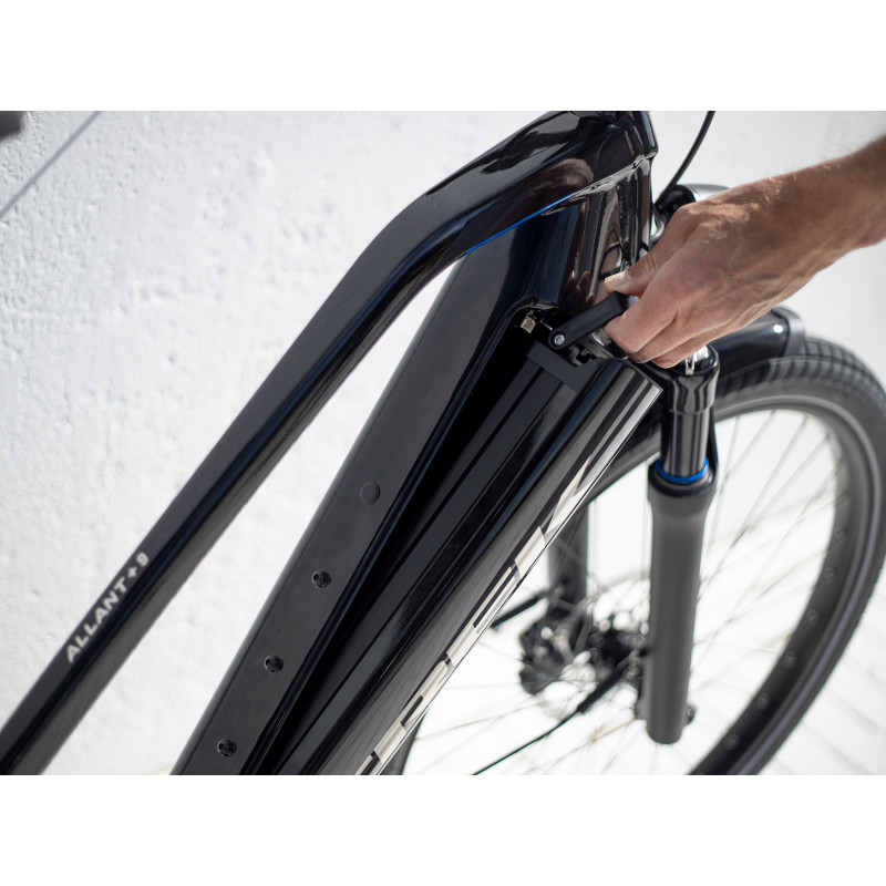 - Systém vymeniteľnej integrovanej batérie (RIB) značky Trek vyzerá skvele a ľahko sa používa: úplne skryje batériu v ráme a uľahčí jej vybratie pri nabíjaní a odkladaní mimo bicykla