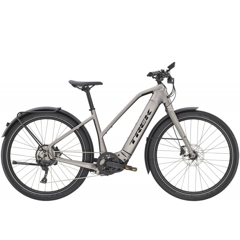 Elegantný hydroformovaný hliníkový rám so stupňovitou geometriou, plne integrovanou 625 Wh batériou Bosch PowerTube, výkonnou pohonnou jednotkou Bosch Performance Line CX (250 W, 85 Nm), ktorá vám pomáha udržiavať rýchlosť až 25 km/h, a ovládačom Kiox. Plus 10-stupňové hnacie ústrojenstvo Shimano, hydraulické kotúčové brzdy, integrovaný systém predného a zadného osvetlenia, blatníky, zadný nosič a tuhé 27,5 palcové kolesá s pevnými osami.