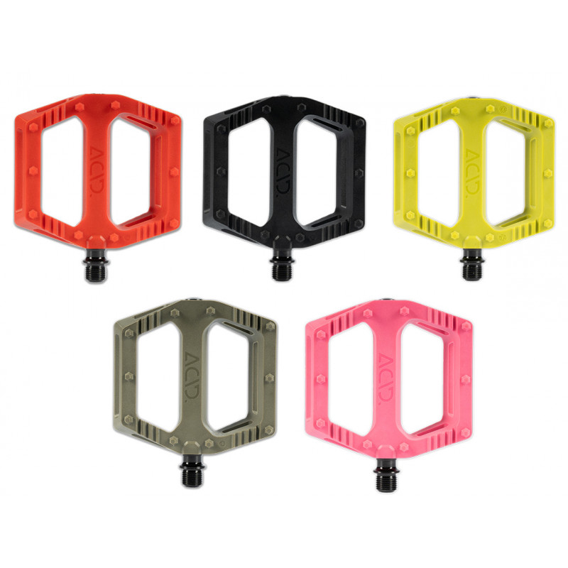 Pedále ACID FLAT C6-ZP sú k dispozícii v štyroch farbách a čiernej farbe, takže ich možno farebne zladiť s celým radom gripov CUBE a rámov bicyklov, čím získajú štýlový vzhľad.