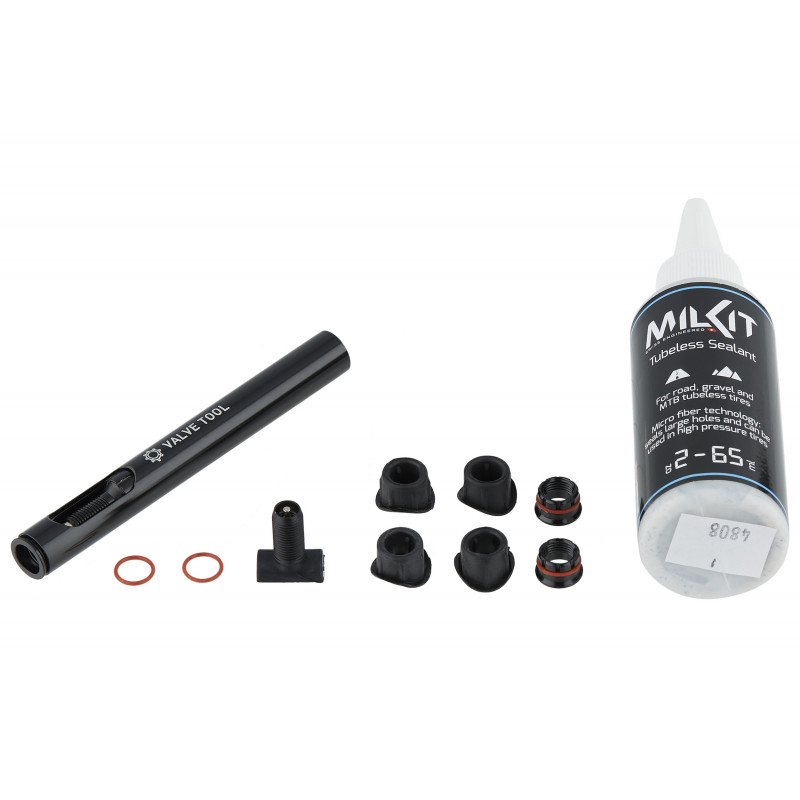 Každé gravel koleso Advanced SL X.R.36 je dodávané s kompletnou sadou ventilov Streem Aero, predinštalovanou bezdušovou ráfikovou páskou a bezdušovým tesniacim tmelom Milkit.