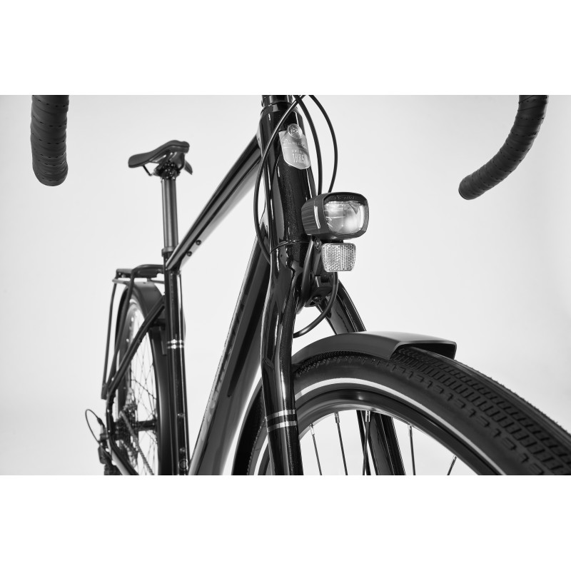 - Bontrager Girona Comp, sub tread puncture protection, Black Sidewall, Reflective stripe, 700x50C, made with recycled content