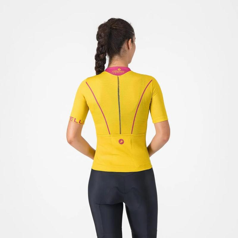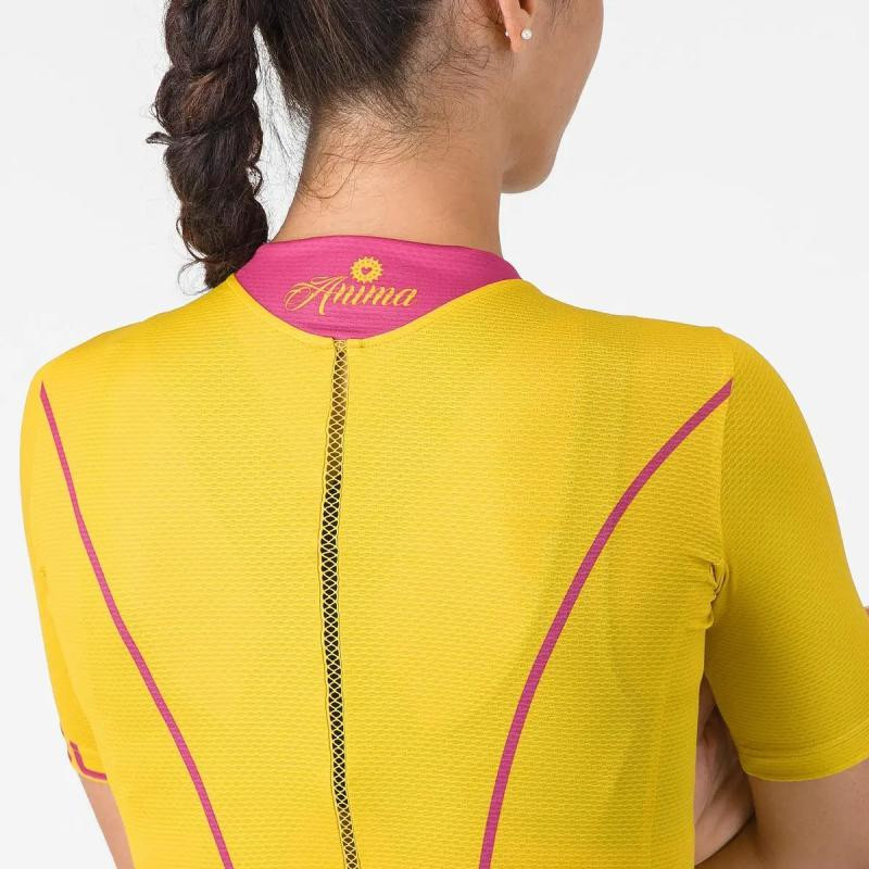 Výkon, pohodlie a nadčasový štýl. <br><br>Ľahký žakárový materiál potlačený sublimačnou potlačou <br>Strih na telo<br>Vertikálny odvetrávací pás cez chrbát<br>3 zadné vrecká <br>Rukávy ukončené bez obšitia<br>Teplotný rozsah: 18-32C<br>Hmotnosť: (S) 109gr<br>Strih: prispôsobivý<br><br>Dlhoročná stálica v ženskej kolekcii Castelli, dres Anima bol vždy zladením výkonu, pohodlia a nadčasového dizajnu. Teraz sa vracia, úplne zmenený – s vylepšeným materiálom aj strihom a s premyslenými detailami, vďaka čomu sa na bicykli budete cítiť lepšie ako kedykoľvek predtým. Použili sme jemnejšie, elastickejšie materiály pre viac pohodlia a tesnejší, obtiahnutejší strih. Golier sme upravili kvôli lepšiemu pocitu a modernému vzhľadu, zatiaľ čo odvetrávací pásik na chrbte dopľňa špecifický dizajn a zlepšuje odvetrávania počas teplejších dní. Má všetko, čo ste milovali na Anime, len vylepšené. <br><br>Materiálové zloženie:<br>Hlavný materiál 100%Polyester<br>Centrálny chrbát 57%Polyamid 43%Elastan