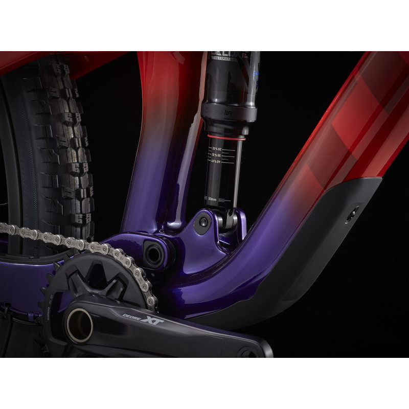 Top Fuel 9.8 je celoodpružený karbónový horský bicykel pre jazdcov, ktorí sa neuspokoja s priemerom. Ani čo sa týka dielov ani štýlu jazdy. Kombinuje špičkový balík dielov s ľahkým karbónovým rámom do jedného neuveriteľne zábavného stroja, ktorý je rýchly na miernych a zábavný na technických singletrackoch. Hľadáte univerzálny celoodpružený horský bicykel, ktorý je efektívny a rýchly, ale nevyhýba sa ani väčším prekážkam. Chcete vyššiu tuhosť a nižšiu hmotnosť karbónového rámu, ale radi ušetríte nejaké peniaze na dieloch. Ľahký a tuhý celokarbónový rám, 120 mm vidlica RockShox SID Select+, 120 mm zdvih vzadu s tlmičom RockShox SID Luxe Ultimate a nové hnacie ústrojenstvo Shimano XT 1x12. K tomu široké karbónové kolesá Bontrager Line Elite 30 so 108-zubovým nábojom Rapid Drive pre okamžitý záber, 4-piestové brzdy na istotu v klesaní, teleskopická sedlovka Bontrager Line Elite a karbónové riadidlá. Top Fuel 9.8 je neuveriteľne zábavný karbónový zjazdový bicykel s vylepšenými dielmi, ktoré vám na trati prinesú značné výhody, ako napríklad vyššiu rýchlosť vďaka karbónovým kolesám a lepšiu priľnavosť vďaka mimoriadne hladkému odpruženiu. - Širšie kolesá Line elite 30 poskytujú lepšiu podporu plášťov, takže môžete používať nižší tlak a získať väčšiu trakciu - Elegantný priestor v ráme poskytuje všestranné úložisko na náradie a vybavenie - Dokonalá konfigurácia odpruženia tohto bicykla je efektívna a zároveň pripravená na zábavu - Nový odnímateľný prvok Knock Block obmedzuje uhol otáčania riadidiel, a chráni tak všetky lanká a hadičky bez toho, aby obmedzoval polomer zatáčania Systém Active Braking Pivot Systém Active Braking Pivot umožňuje našim inžinierom nastaviť reakciu odpruženia na zrýchlenie a brzdné sily nezávisle.To znamená, že máte väčšiu istotu pri ovládaní, keď to najviac potrebujete.