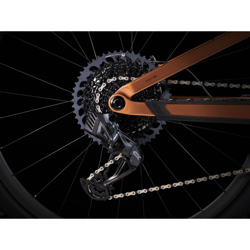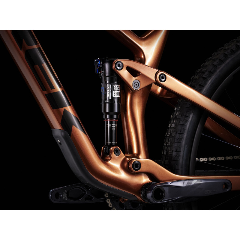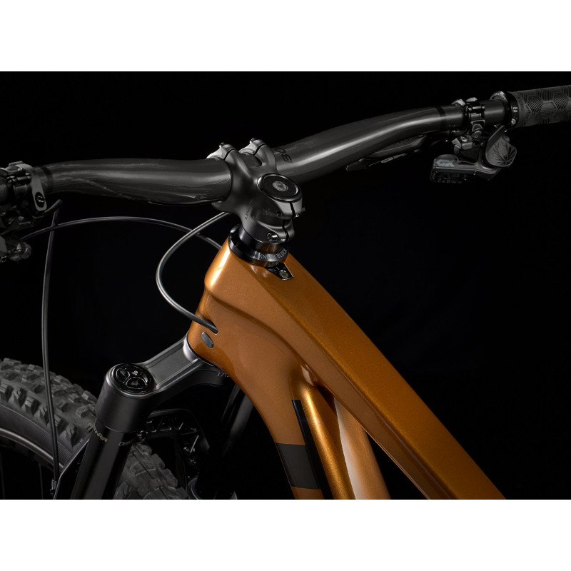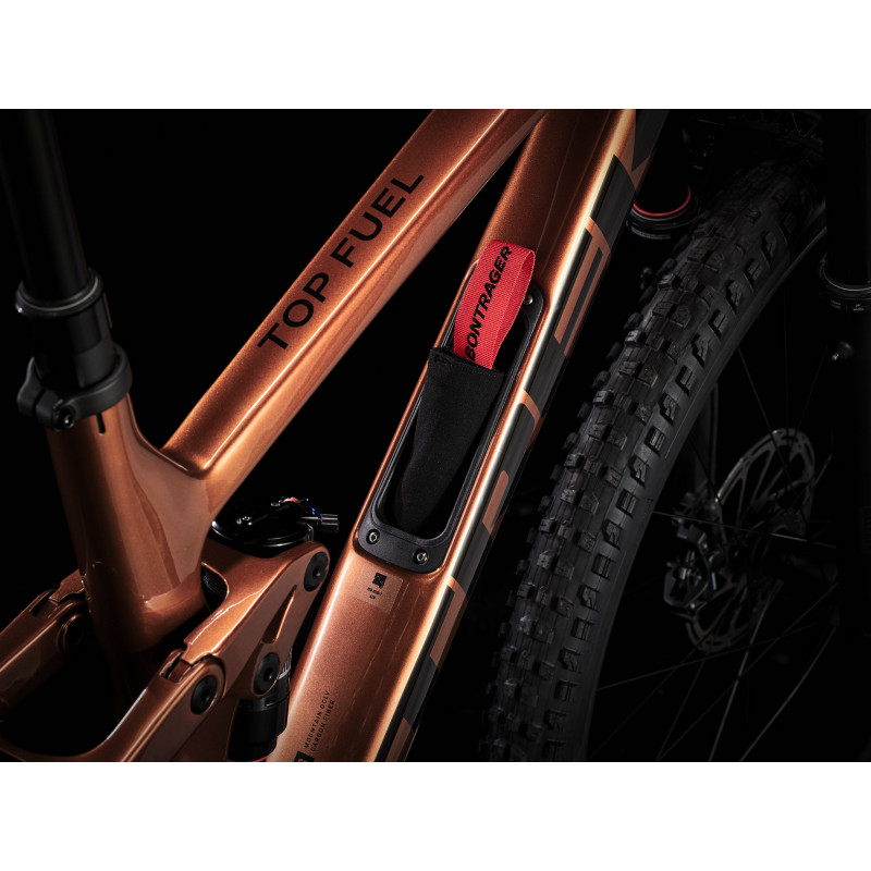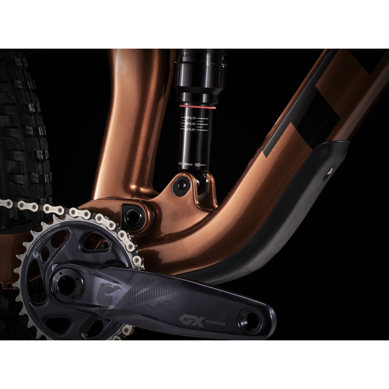 Top Fuel 9.8 je celoodpružený horský bicykel s karbónovým rámom pre náročných cyklistov, ktorí sa neuspokoja s priemerom. A to ani keď ide o kvalitu komponentov, ani o štýl jazdy. Kombináciou špičkových komponentov, napríklad nového bezdrôtového elektronického radenia SRAM GX Eagle AXS a ľahkého karbónového rámu, vznikol bicykel, na ktorom sa neuveriteľne zabavíte a bez problémov budete zvládať flow traily aj technickejšie singletracky. Hľadáte všestranný celoodpružený horský bicykel, ktorý je rýchly, účinne prenáša silu z pedálov a nezľakne sa ani náročnejšieho terénu. Chcete karbónový rám kvôli vyššej tuhosti a nižšej hmotnosti a zároveň bleskurýchle bezdrôtové elektronické radenie. Ľahký a tuhý celokarbónový rám, vidlica RockShox Pike Select+ so zdvihom 130 mm, zadný tlmič RockShox Deluxe Ultimate RCT so zdvihom 120 mm a bezdrôtové elektronické radenie SRAM GX Eagle AXS s extrémne veľkým 52-zubovým pastorkom do náročných stúpaní. K tomu prirátajte široké karbónové kolesá Bontrager Line Elite 30 s nábojom Rapid Drive so 108 zubmi pre rýchly záber, teleskopickú sedlovku Bontrager Line Elite a karbónové riadidlá. Top Fuel 9.8 je celokarbónový zjazdový bicykel, s ktorým si užijete neskutočnú zábavu. Vďaka lepším komponentom, napríklad karbónovým kolesám, extrémne citlivému odpruženiu a precíznemu a rýchlemu radeniu ASX, získate zásadnú výhodu v podobe lepšej trakcie a vyššej rýchlosti. - Radenie SRAM GX Eagle AXS radí inteligentne, plynulo a úplne bezdrôtovo - Elegantný priestor v ráme predstavuje praktické úložisko na náradie a výbavu - Jedinečné odpruženie bicykla je nielen účinné, ale zároveň pripravené na všetky výzvy - Širšie kolesá Line Elite 30 poskytujú plášťom lepšiu oporu, takže ich môžete nahustiť na nižší tlak, za čo sa vám odmenia lepšou trakciou Systém Active Braking Pivot Systém Active Braking Pivot umožňuje našim inžinierom nastaviť reakciu odpruženia na zrýchlenie a brzdné sily nezávisle.To znamená, že máte väčšiu istotu pri ovládaní, keď to najviac potrebujete.