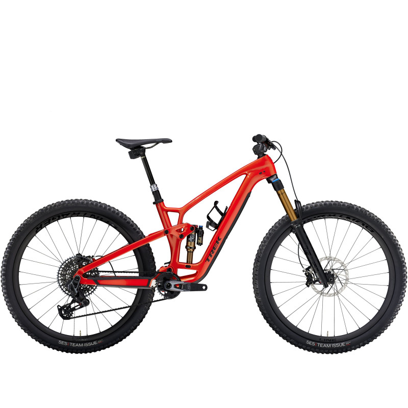 Fuel EX 9.9 X0 AXS je trailový bicykel zameraný na výkon, určený pre jazdcov, ktorí vedia oceniť v živote to najlepšie.Kombinuje špičkový karbónový rám s prvotriednymi komponentmi, od kolies z uhlíkových vlákien až po 150 mm vidlicu FOX Factory s povrchovou úpravou Kashima a plne bezdrôtový pohon SRAM X0.Je to bicykel, ktorý vládne horám a neváha si nárokovať na svoju doménu, rozbíja skalné útvary, prekonáva zrázy a vracia sa späť na vrchol, aby ho opäť zdolal. Máte vycibrený vkus na horské bicykle a neuspokojíte sa len tak s hocičím.Hľadáte bicykel skonštruovaný tak, aby zvládol čisto horský terén a ovládol ho vďaka najlepším technológiám, ktoré cyklistický priemysel ponúka, od ľahkého a pevného karbónového rámu a kolies, ktoré prekonávajú aj tie najdrsnejšie línie, až po vidlicu FOX Factory a plne bezdrôtovú špičkovú súpravu SRAM X0. Ľahký karbónový rám OCLV Mountain Carbon skonštruovaný tak, aby zvládol drsné a búrlivé podmienky, pár jemne vypletených karbónových kolies, ktoré s ľahkosťou prekonávajú technický terén, a špičkový plne bezdrôtový úchyt elektronická preodovka SRAM X0 AXS.Navyše získate hodvábne hladký zdvih 150 mm vidlice FOX Factory 36 so vzduchovou pružinou EVOL a tlmičom GRIP140 a 2 mm zadného odpruženia FOX Factory Float X s tlmičom RockShox Reverb AXS, to všetko doplnené nastaviteľnou geometriou na doladenie jazdy podľa vašich predstáv a vnútorným úložným priestorom rámu, ktorý vám umožní udržať si poriadok vo vašom nastavení bez toh bez Fuel EX 9.9 je bicykel, ktorý uspokojí aj tých s najvyberanejším vkusom.Spája v sebe karbónový rám vhodný na čisto horské traily s najlepšími komponentmi, ktoré nájdete na modernom horskom bicykli, od karbónových obručí až po bezdrôtové radenie SRAM X0 AXS.Všetko je zabalené do nastaviteľnej geometrie, takže si môžete bicykel doladiť tak, aby ste sa vždy cítili tak, ako chcete. - Fuel EX Gen 6 vám poskytuje 140/150 mm zdvih s extra nastaviteľnými funkciami a stabilnejším ovládaním, plus robustnejší rám s vnútorným úložiskom - Rozšírili sme ponuku veľkostí, aby sme sa lepšie prispôsobili všetkým jazdcom, a pre každú veľkosť rámu používame najlepšie padnúce kolesá:Rámy XS dostanú 27,5˝ kolesá, rámy S si môžu vybrať medzi 27,5˝ alebo 29˝ a veľkosti M a vyššie dostanú 29˝ kol - Je pripravený na jazdu s ľahkými karbónovými kolesami, ktoré si ľahko poradia s nerovným terénom a držia líniu, keď sa niečo stane náročným - Úložný priestor v ráme uľahčuje prenášanie všetkých vašich základných vecí, pričom vaše nastavenie zostáva efektívne a elegantné - S nastaviteľným uhlom hlavového zloženia (uhlové vložky sa predávajú samostatne) a prepojením Mino Link si môžete vybrať zo šiestich rôznych konfigurácií geometrie Vnútorný úložný priestor Vnútorný úložný priestor v ráme umožňuje ľahko sa zbaviť batožiny a stále mať pri sebe to najdôležitejšie na cestu.