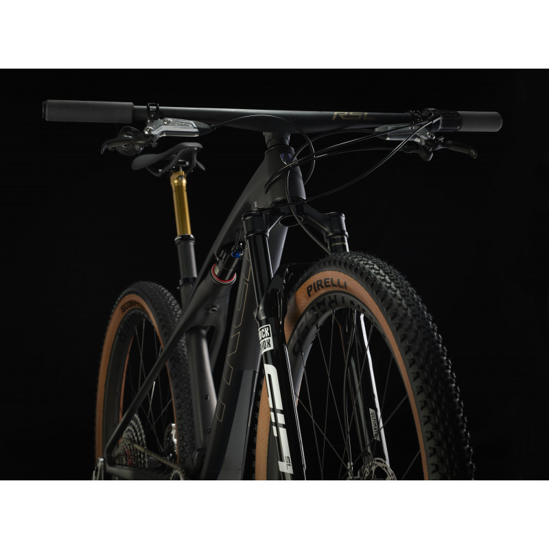 - Integrované riadítka Bontrager RSL, OCLV Carbon, stúpanie riadidiel 0 mm, šírka 750 mm, stúpanie predstavca -13 stupňov, dĺžka predstavca 80 mm