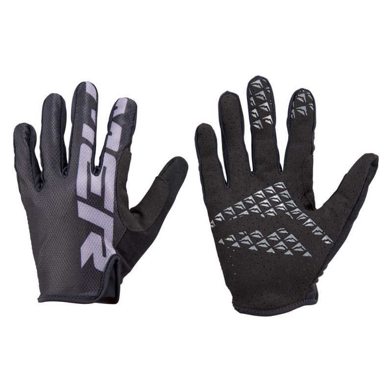 Dlhé cyklistické rukavice TRAIL Edition - verzia s dlhými prstami - silikónové plochy na dlani pre lepší grip - chrbtová strana zo sieťoviny a perforovaný materiál na dlaňovej strane pre lepšie odvetranie - zloženie materiálu: 50% nylon, 50% polyester - farba: šedo-čierne